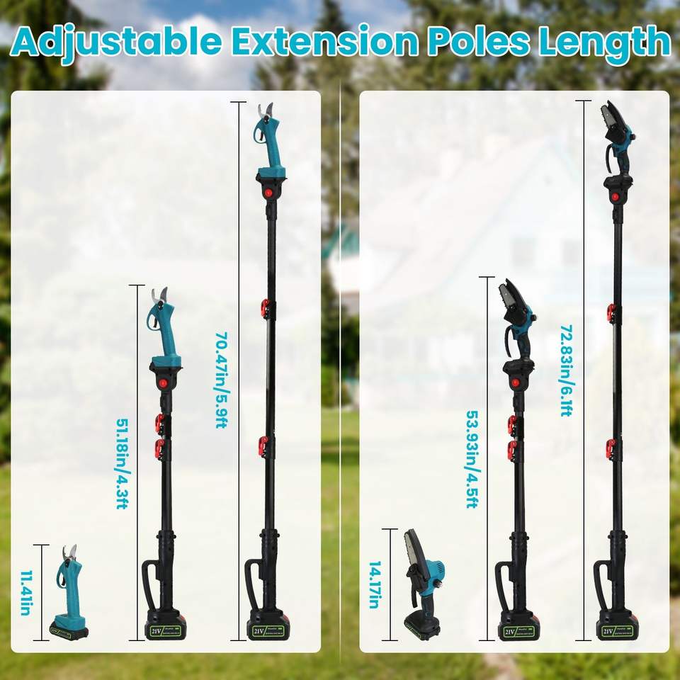 Cesoie elettriche per potatura 4-in-1 7 angoli di testa regolabili Cordless albero taglio palo sega con batterie ricaricabili 3000mAh 2 pz