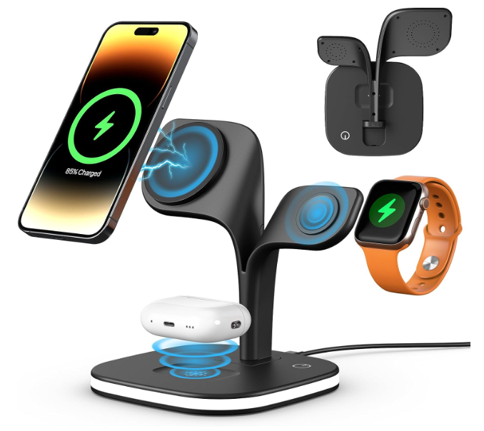 4 in 1 Magnetic Wireless Charging Station Charger With LED Light