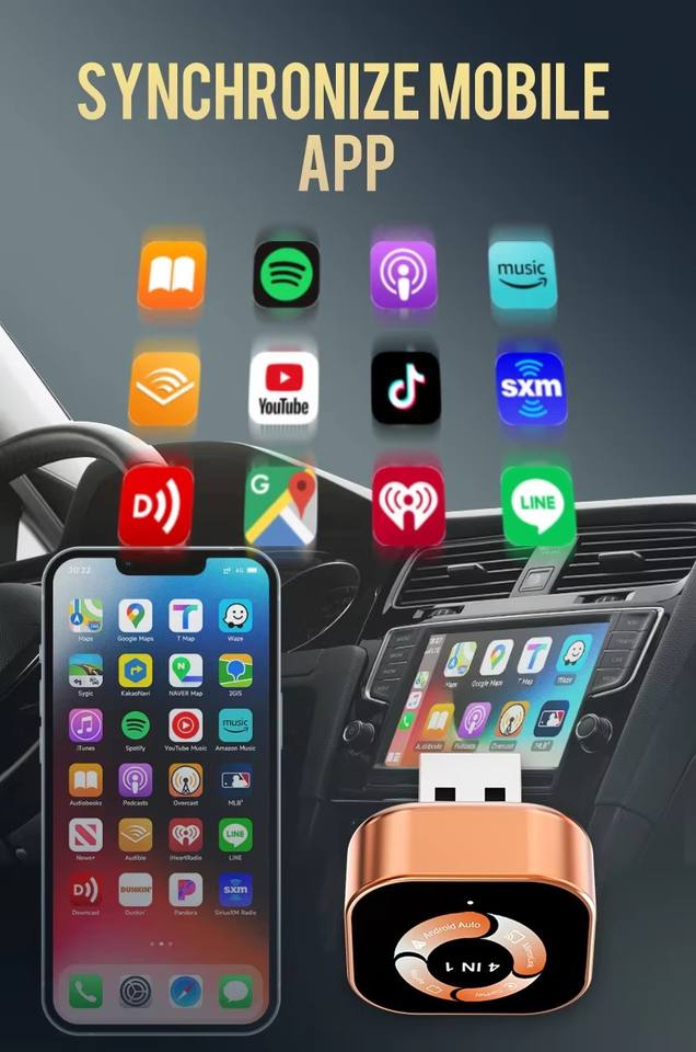 Adattatore Wireless 4-in-1 Smart USB Dongle per CarPlay e Android Auto, Compatibile con Auto Cablate di Fabbrica, Plug & Play per iPhone/Android