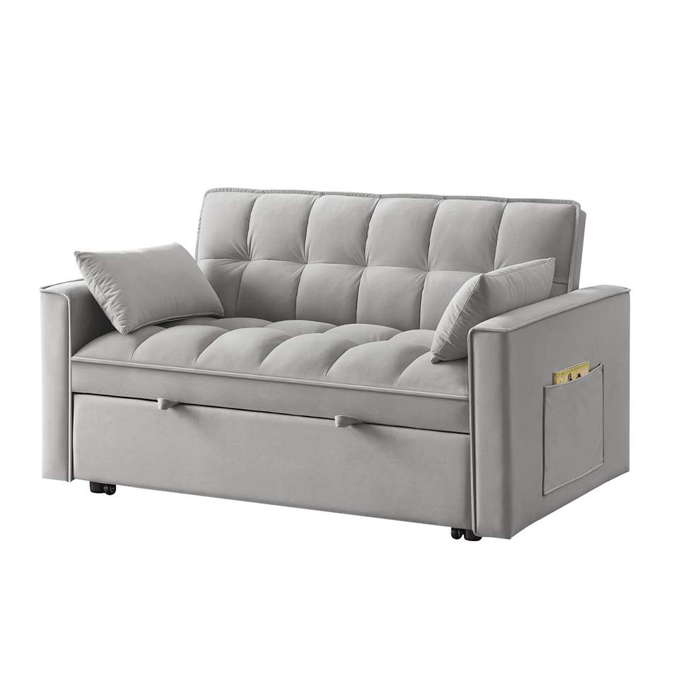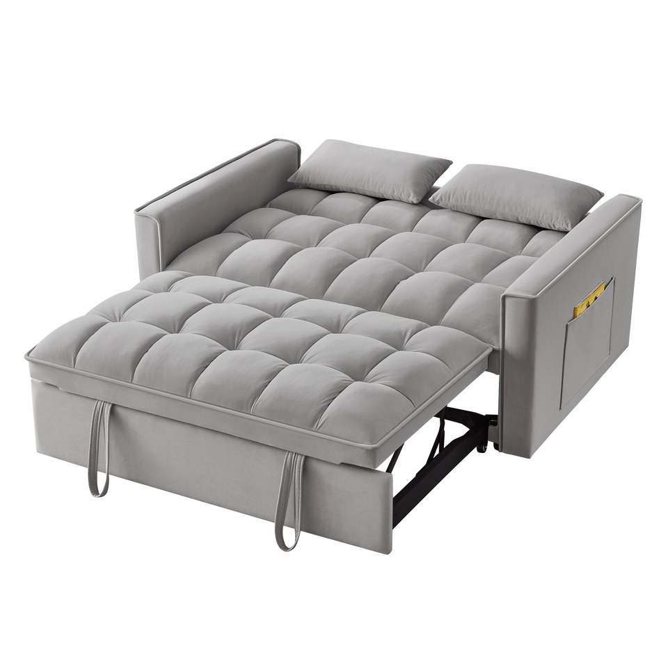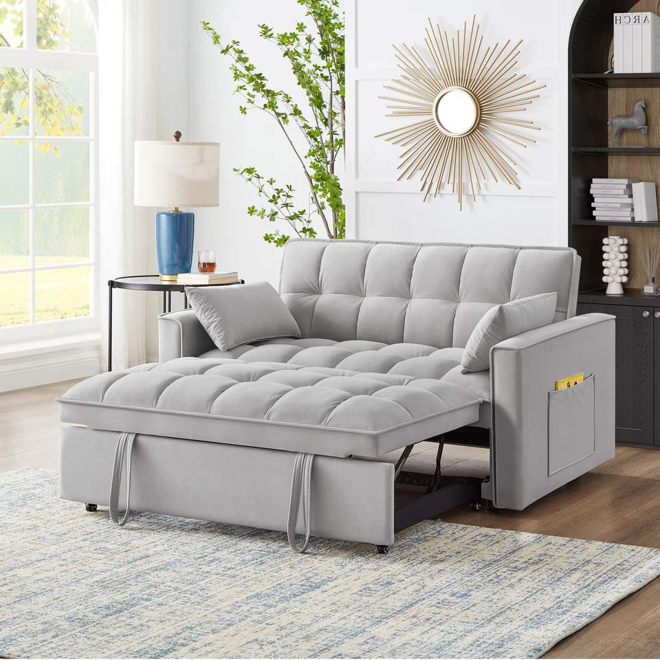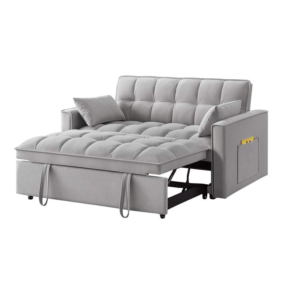 Divano Letto 4-in-1 Trapuntato con Braccioli e Tasche Portaoggetti, Schienale Regolabile, Funzione Estraibile Multifunzione