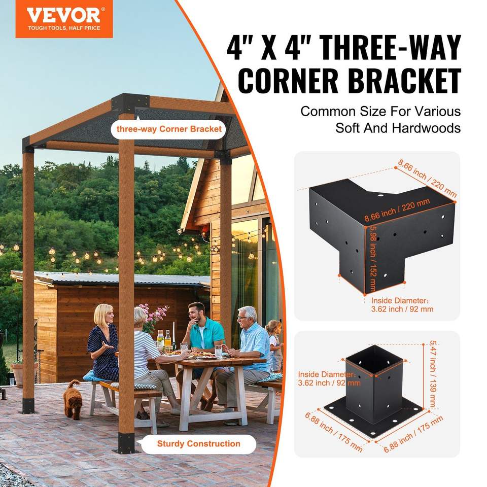 4 ''x 4'' Kit staffa angolare a 3 vie 8 pezzi resistente per la Base Post-legno per facile installazione all'aperto pergolato baldacchini gazebo