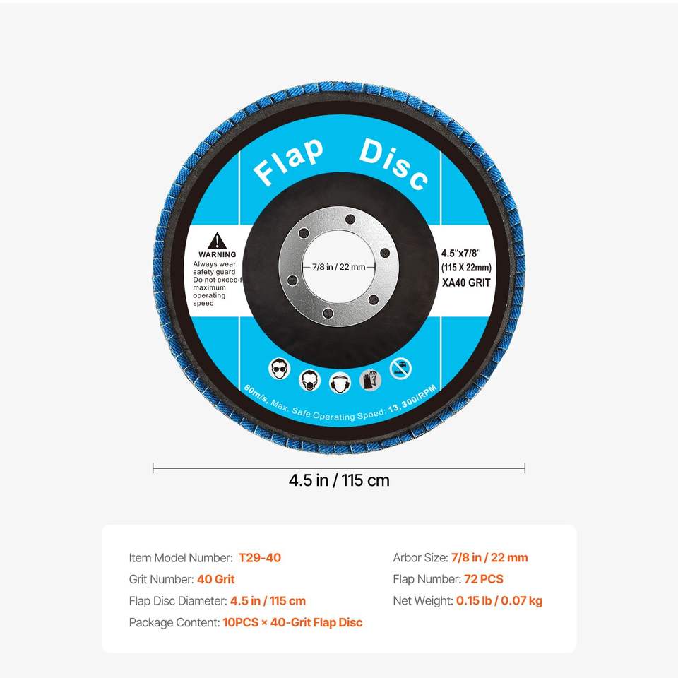 Dischi Abrasivi a Lamelle in Zirconia Tipo 29 per Smerigliatrice Angolare, 40 Grit, 4-1/2'' X 7/8'', per Levigatura e Smerigliatura