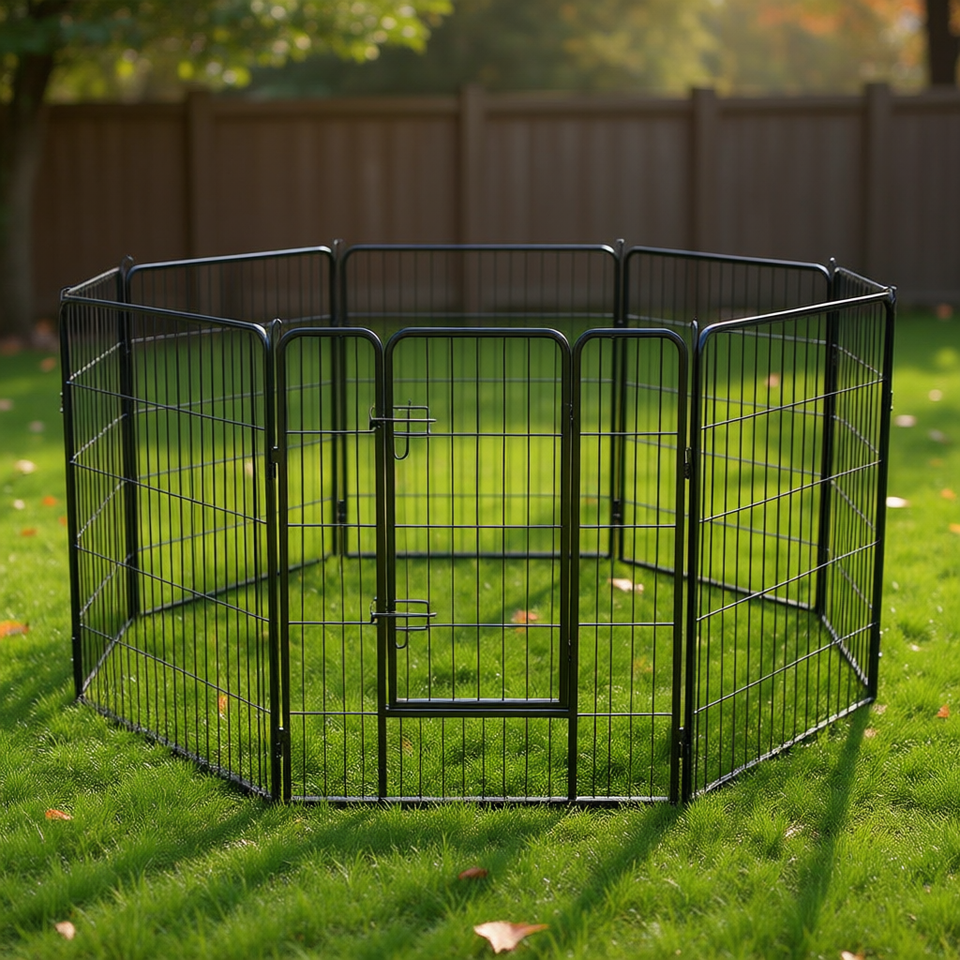 Recinto per Animali Domestici Resistente, 40 Pollici, 8 Pannelli Metallici con Porta, Recinzione per Cani Nera