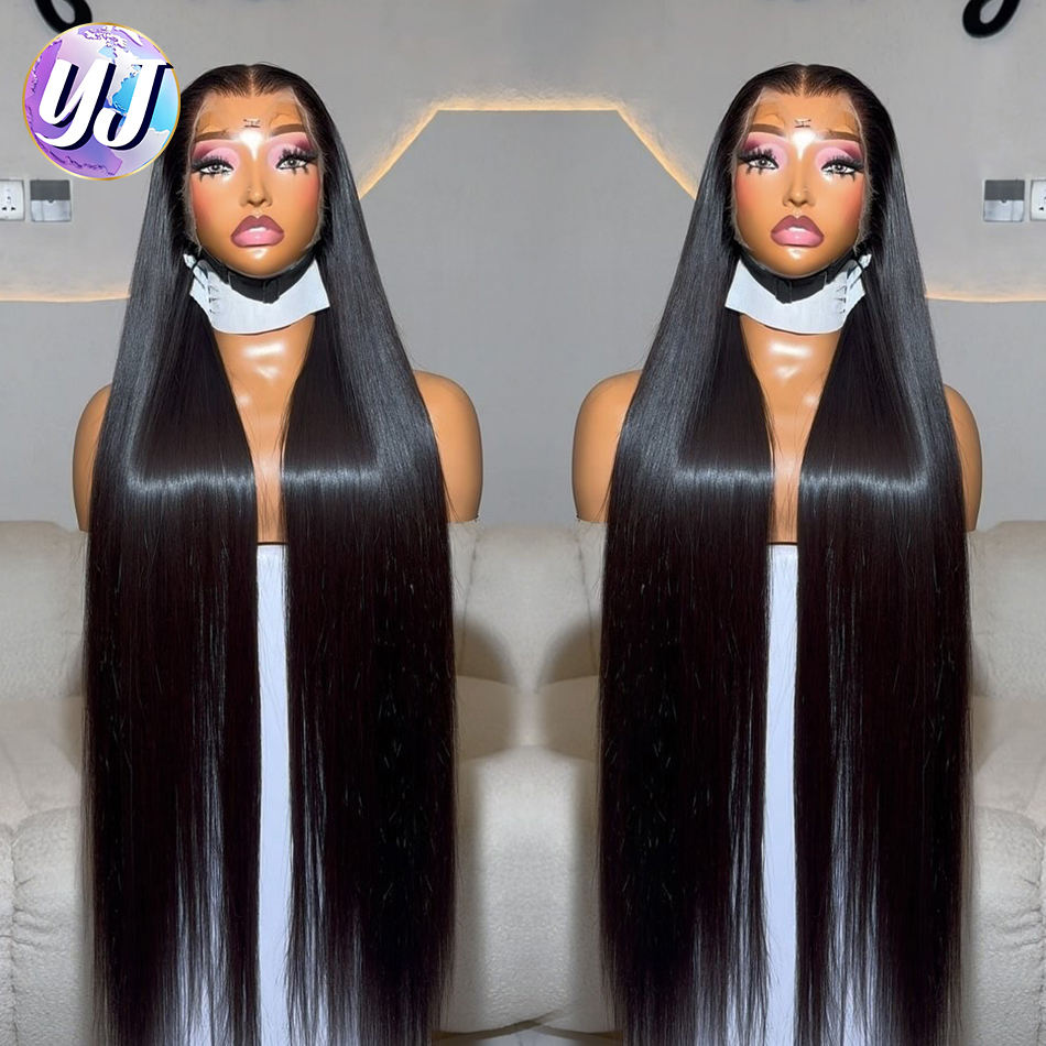 Parrucche in Capelli Umani Vietnamiti Grezzi da 40 Pollici, Frontale in Pizzo 13x6, Liscio Naturale, Colore Naturale, Parrucca Frontale in Pizzo HD per Donne di Colore