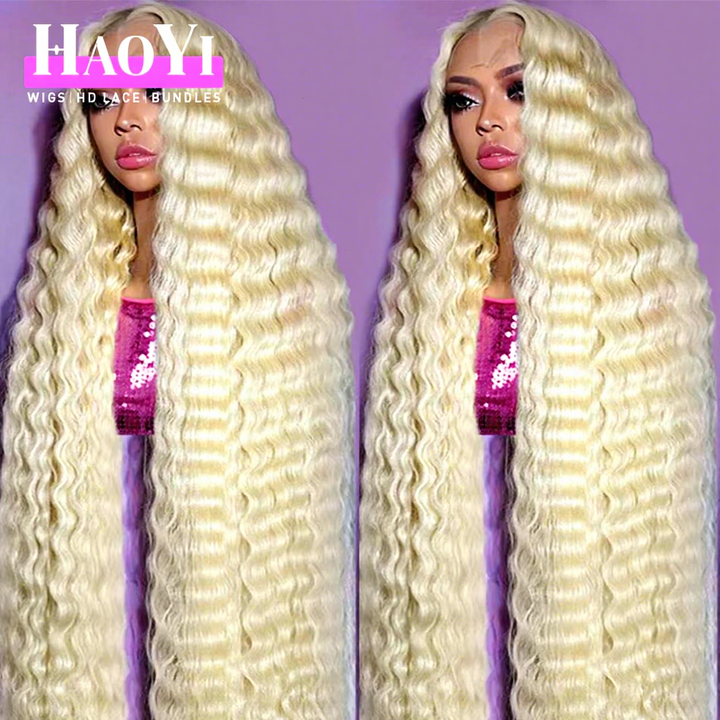 Parrucca in Capelli Umani Vergini Brasiliani 40 Pollici, Onda Profonda 613, Frontale HD 13x6 Senza Colla, Colore Biondo, per Donne
