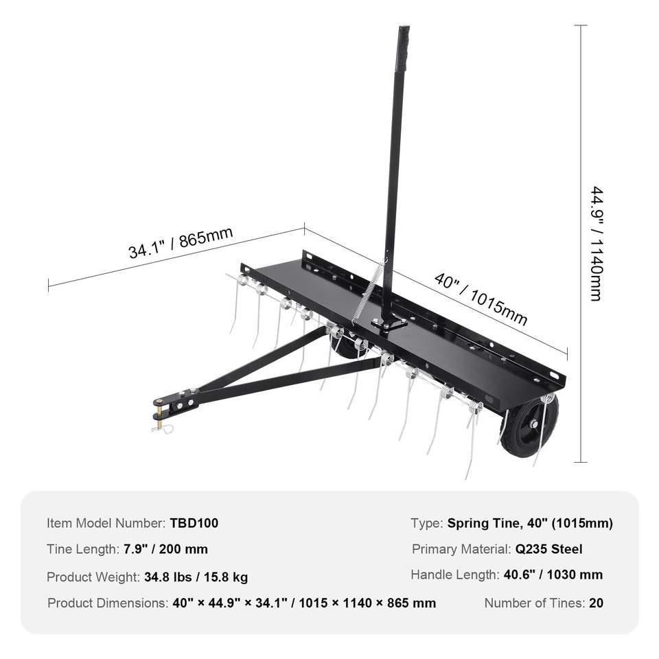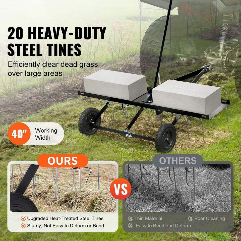 Scarificatore Trainato da 40 Pollici con 20 Denti in Acciaio a Molla, Rastrello Scarificatore per Prato per ATV, Ricambi e Accessori per Tosaerba