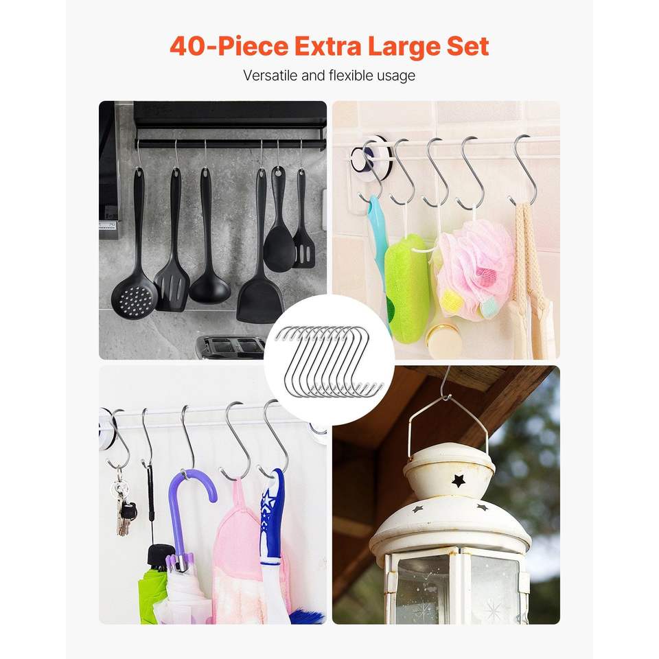 40 Pack Heavy Duty Stainless Steel S Hooks 22.05 LBS Load Capacity for Home & Office Use