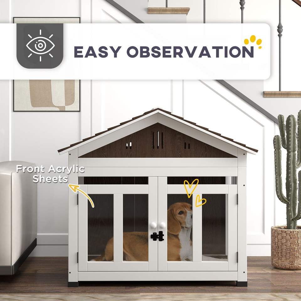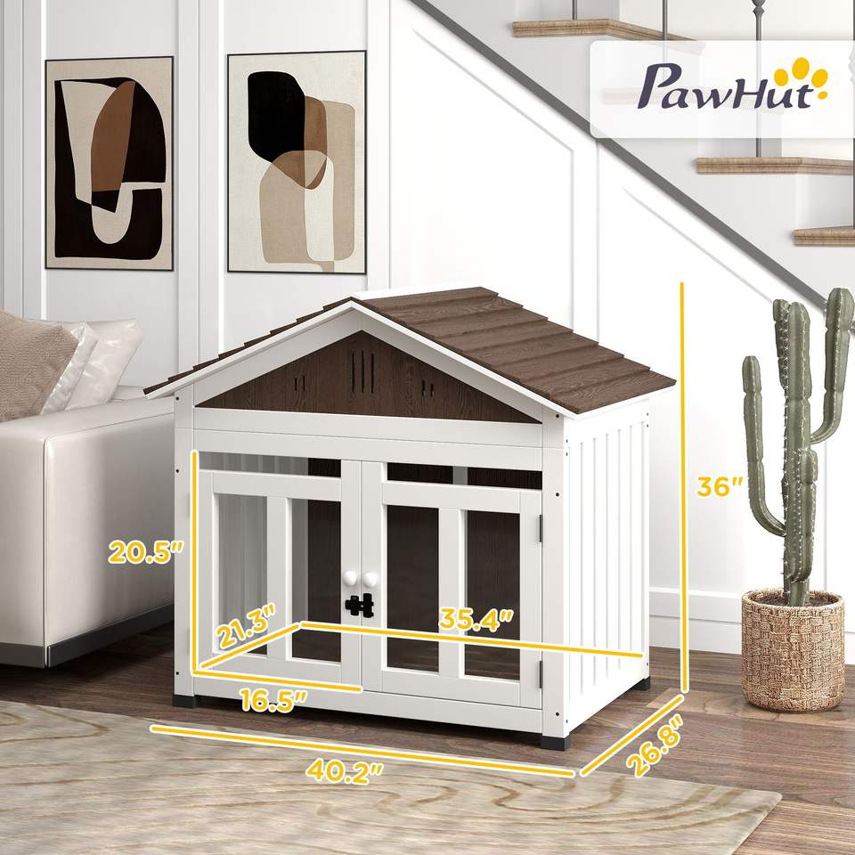 Cuccia per Cani in Legno da 40 Pollici per Cani di Piccola e Grande Taglia, Arredo per Animali Domestici da Interno ed Esterno con Prese d'Aria e Pavimento Rialzato Rimovibile