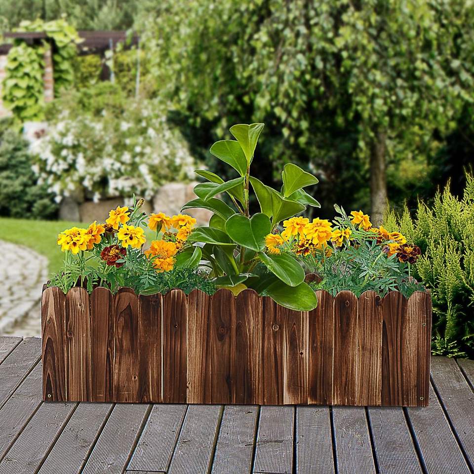 Fioriera Rialzata in Legno con Bordo Ondulato 100x40x30 cm per Fiori e Piante