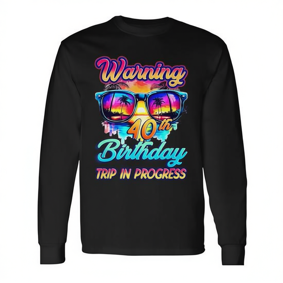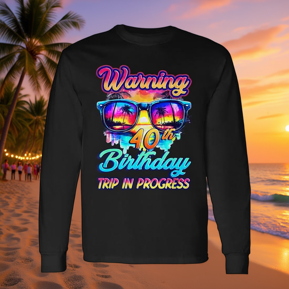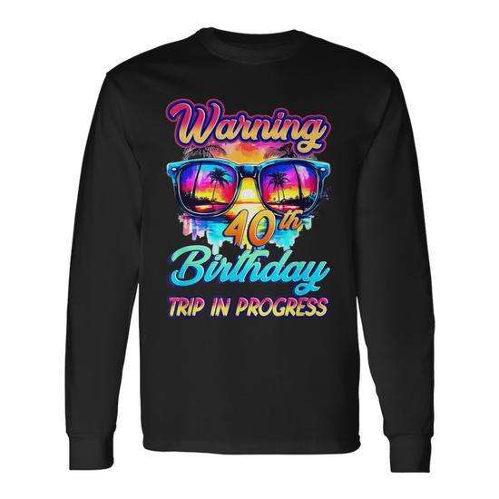 Maglietta promozionale a maniche lunghe con avvertenza per il 40° compleanno: Viaggio a 40 anni in corso