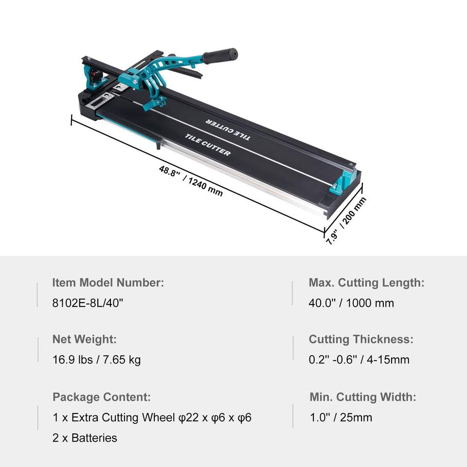 Taglierina Manuale per Piastrelle in Ceramica e Porcellana da 40 Pollici con Ruota di Taglio in Carburo di Tungsteno, Posizionamento a Infrarossi e Funzioni Antiscivolo