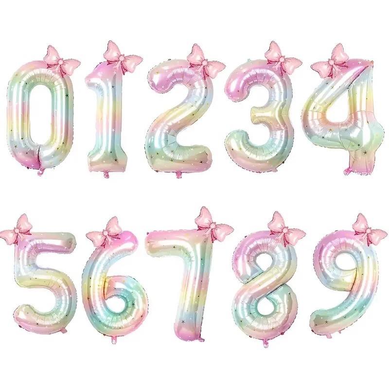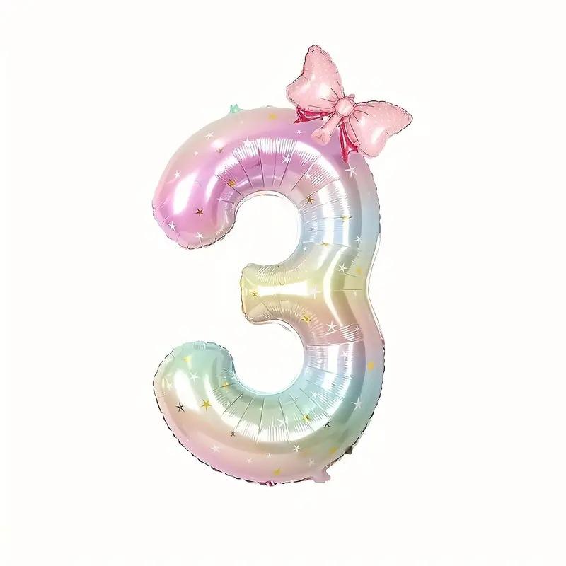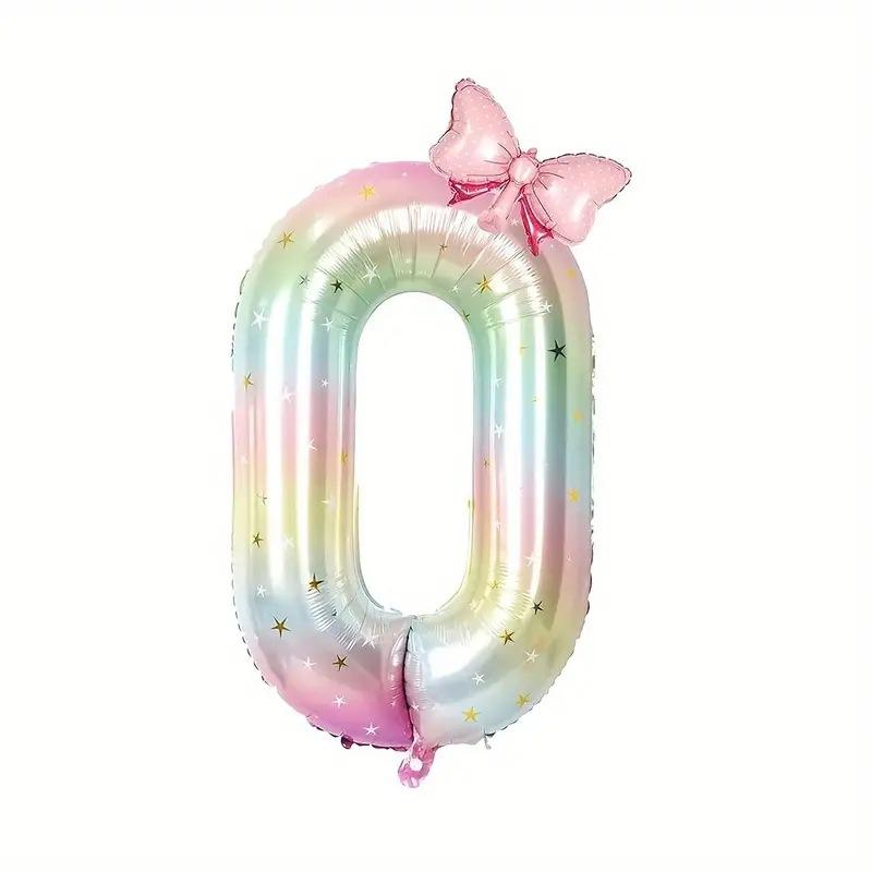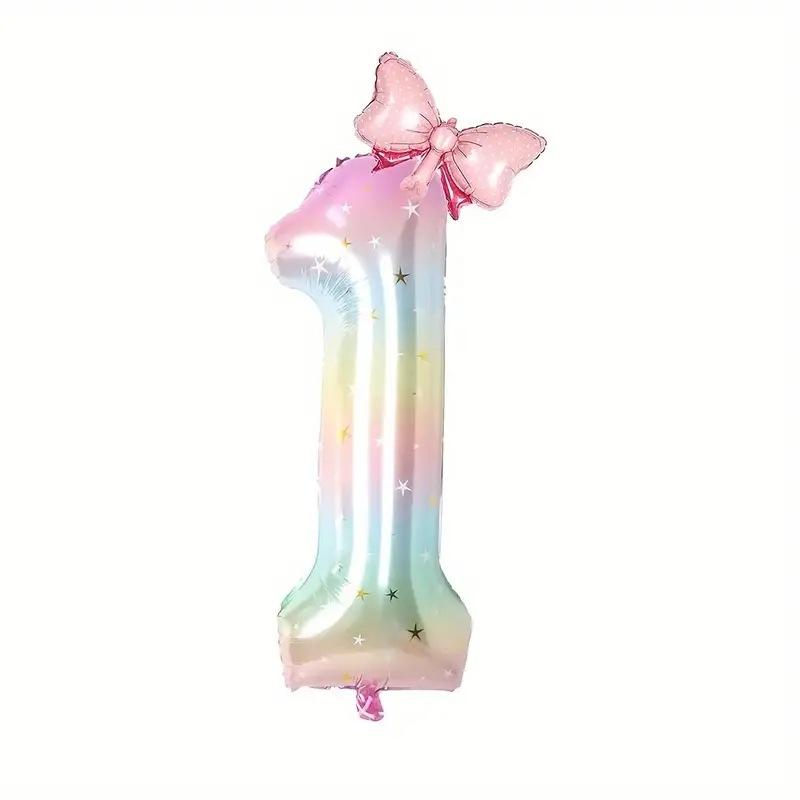 Palloncino Digitale a Forma di Fiocco con Gradiente Cielo Stellato da 40 Pollici per Decorazioni Festa Primo Compleanno Bambina