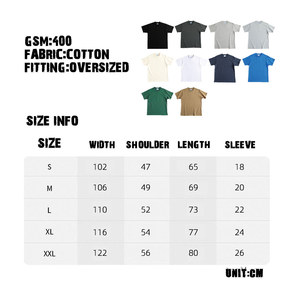 T-Shirt Streetwear da 400 Gsm a Collo Stretto di Alta Qualità di Fabbrica con Stampa Personalizzata T-Shirt da Uomo Tinta Unita Grezza in 100% Cotone