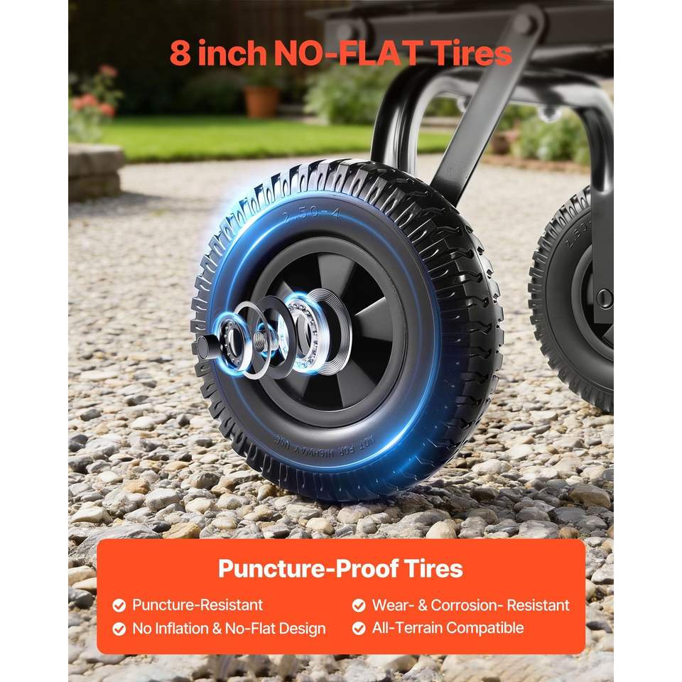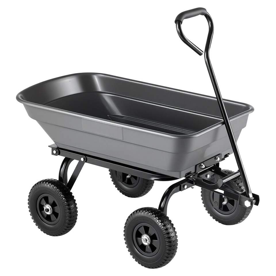 Carrello da Giardino in Polietilene da 180 kg con Meccanismo di Scarico Rapido e Ruota Girevole a 180 Gradi, Carriola con Scarico Rapido a 90 Gradi