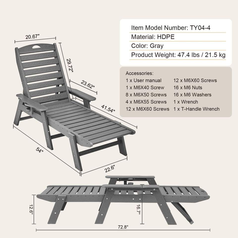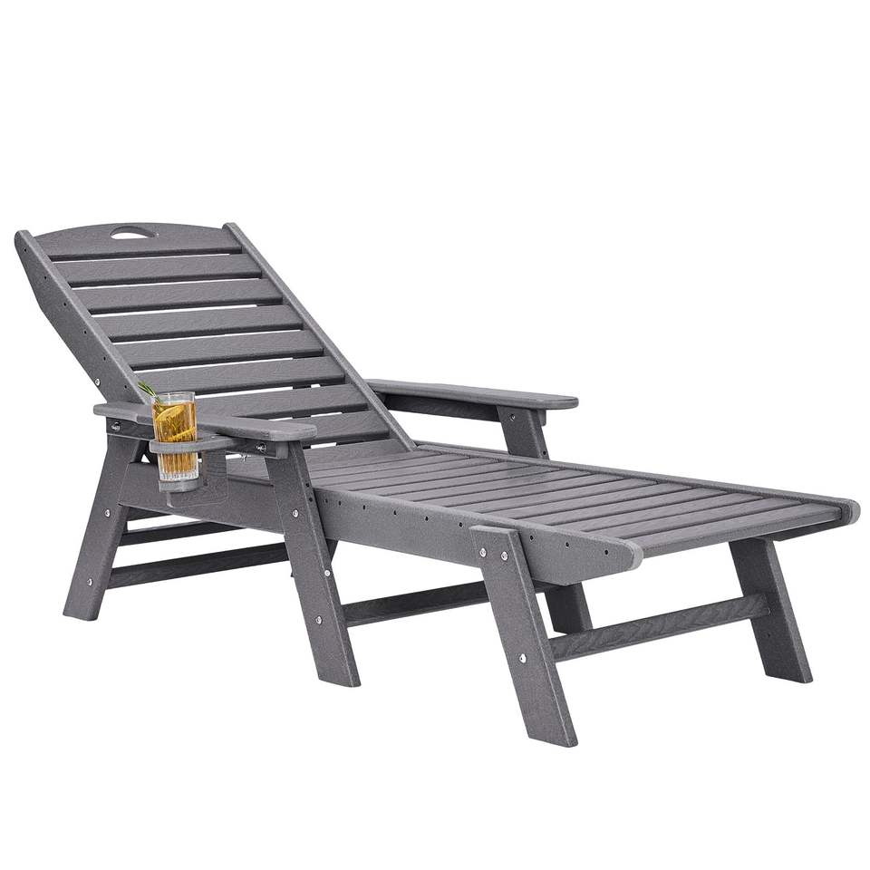 Sdraio da Esterno in HDPE Regolabile a 6 Posizioni con Capacità di Carico di 180 Kg, Chaise Longue con Schienale, Lettino Prendisole