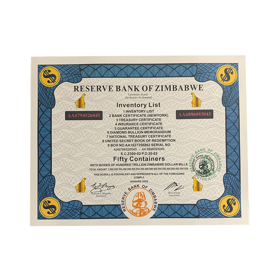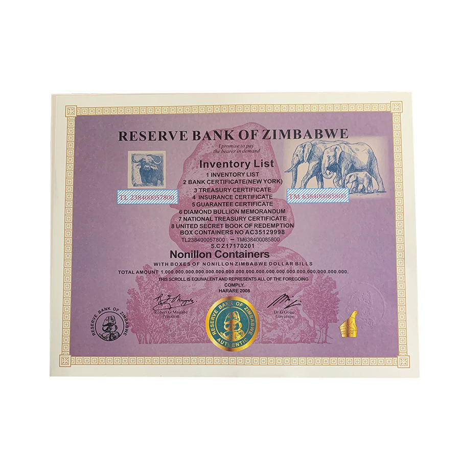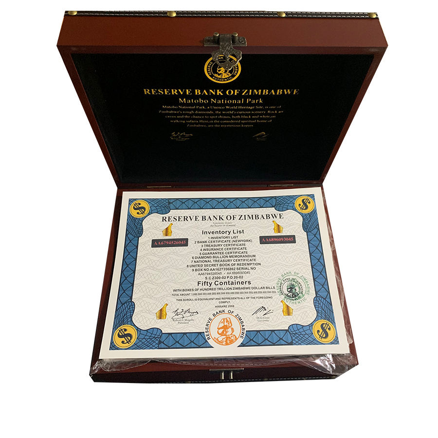 400 Pezzi Lista Inventario Banconote dello Zimbabwe Cinquanta Contenitori Repubblica dello Zimbabwe Importo Numero di Serie in Elegante Scatola