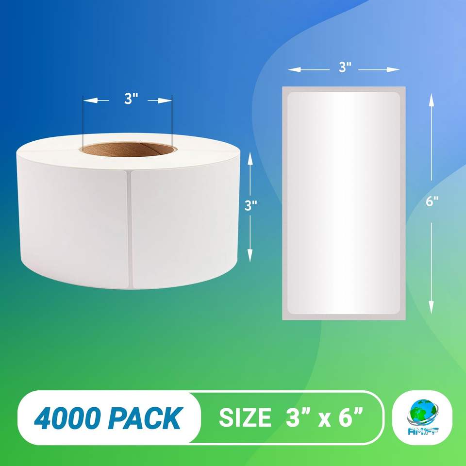 4000-Pack 3 X 6 Inch Self-Adhesive Thermal Transfer Labels White Perforated Industrial Thermal Label Printer Paper for Labeling