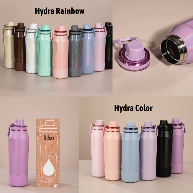 Bottiglia d'Acqua in Acciaio Inox 304 a Doppia Parete da 400ml 600ml, Thermos 100% Ermetico con Coperchio per Uso Sportivo con Imbottitura in Silicone