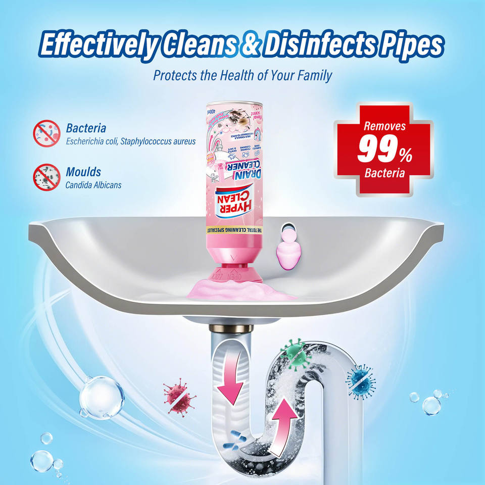 Schiuma Disgorgante da 400ml per Scarichi, Deodorante e Pulitore per Lavandini, Rimuove Ostruzioni di Capelli per Lavandini del Bagno, Lavabi e Vasche