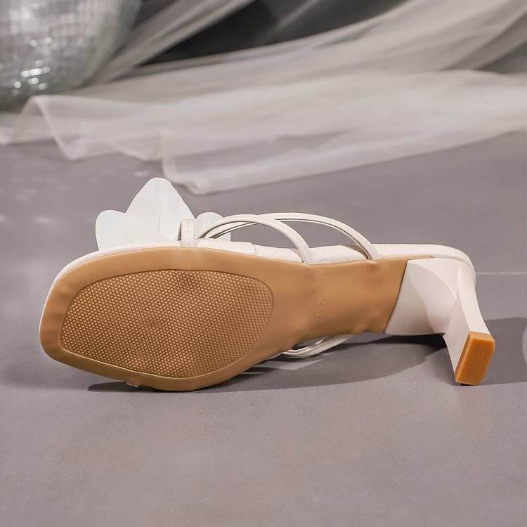 Sandali con Tacco Alto 406 a Punta Aperta con Motivo Floreale, Nuovo Articolo Estivo dal Design Ricercato, Tacco Spesso, Ciabatte Monopezzo da Esterno, Scarpe da Donna all'Ingrosso