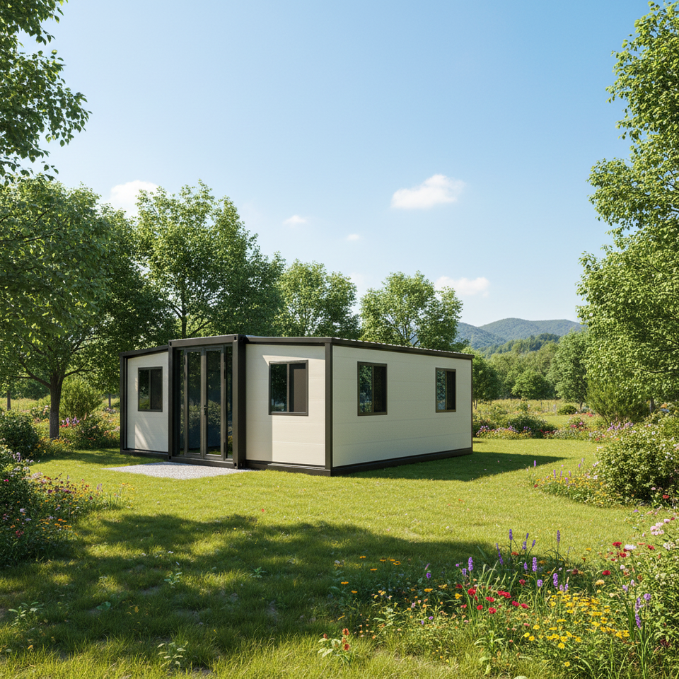 Casa Container Prefabbricata 40FT Personalizzata con Tetto in Legno e EPS, Veranda Inclinata, Layout 2 Stanze, per Ufficio, Hotel, Affitto