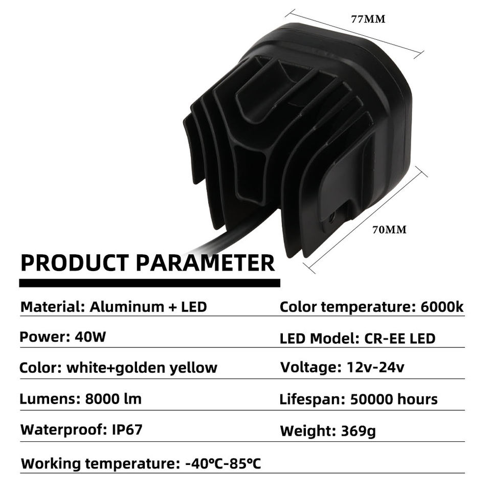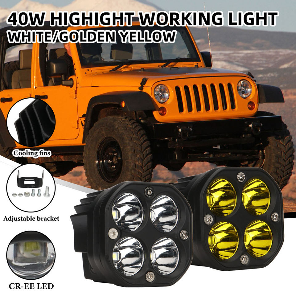 Faro da Lavoro a LED 40W, Luce Ausiliaria per Fuoristrada 4X4, Colore Giallo, 8000LM, 12-24V