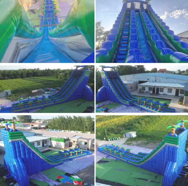 Scivolo d'Acqua Gonfiabile Commerciale in Marmo da 40 Piedi con Piscina, Economico Scivolo d'Acqua per Adulti in Vendita, Doppio Scivolo a Due Corsie