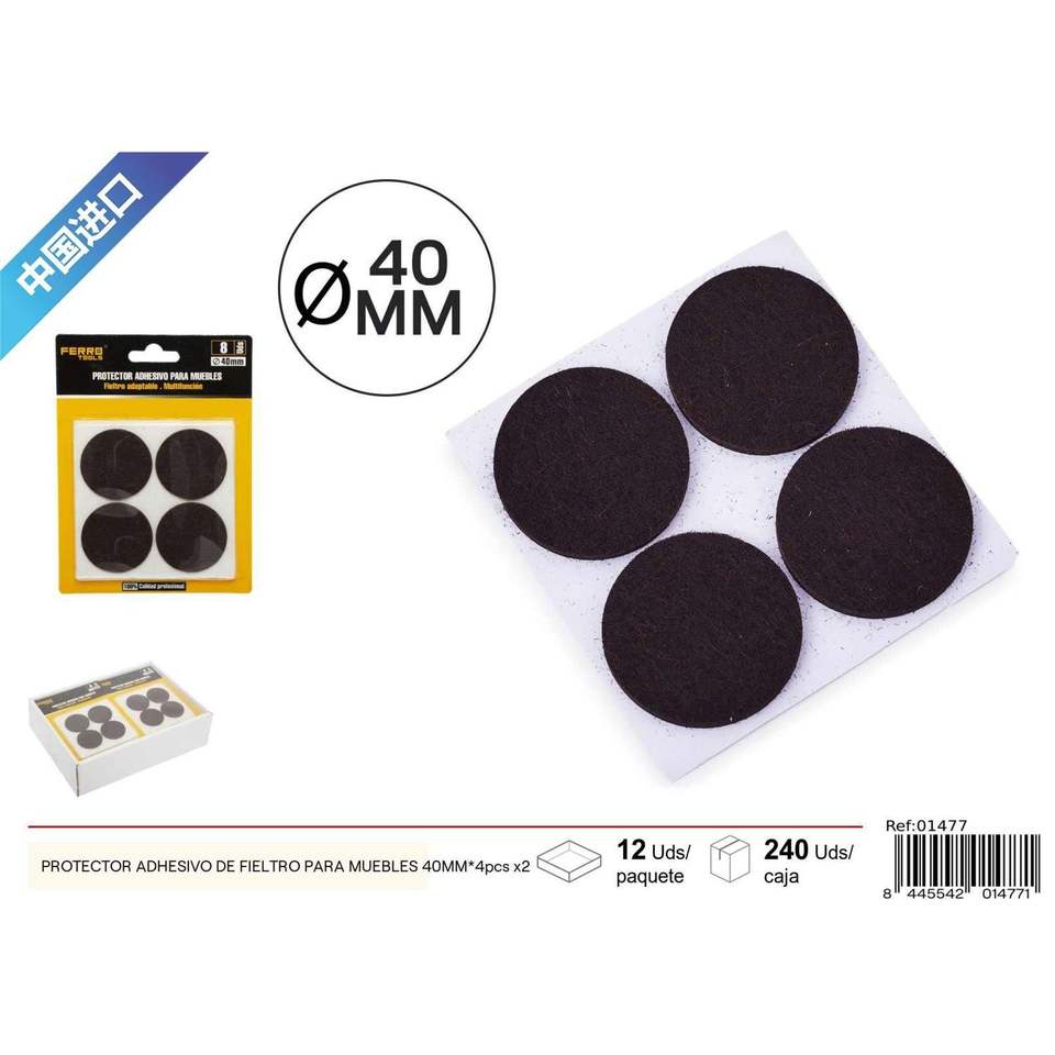 40mm Round Brown Felt Furniture Pads 4pcs Set with Self-Adhesive Square Pattern Durable Material for Home Furniture