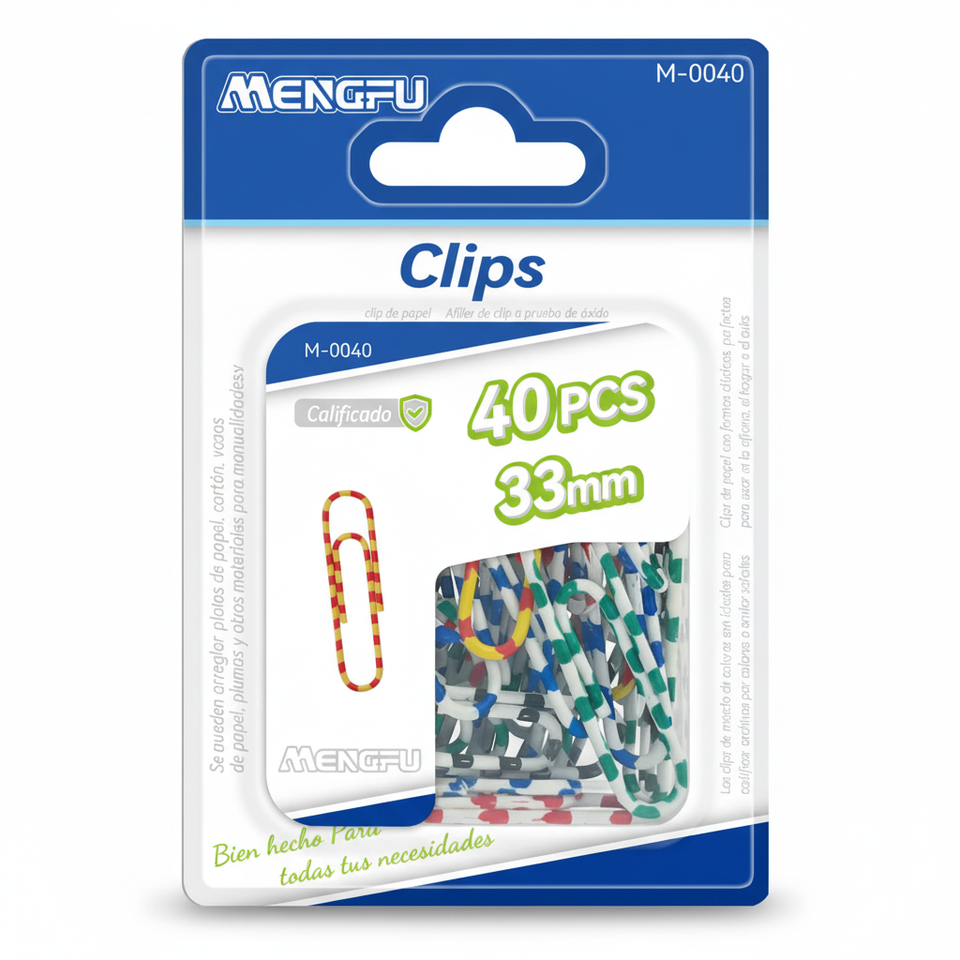 Mengfu M-0040 40 Pezzi Graffette con Motivo Zebrato da 33mm, Forniture per Ufficio e Scuola, Materiale in Metallo e Plastica con Magnete, Made in China