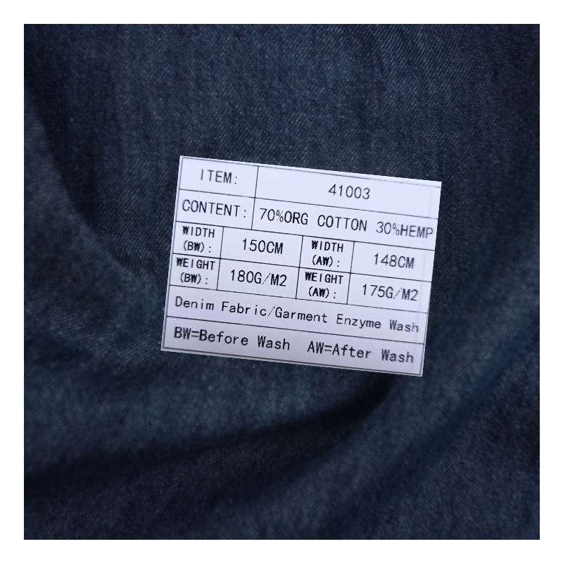 41003 materiale cinese 30% 70% di canapa in cotone biologico in saia Jeans tessuto Denim prezzo all'ingrosso