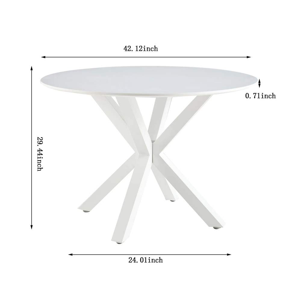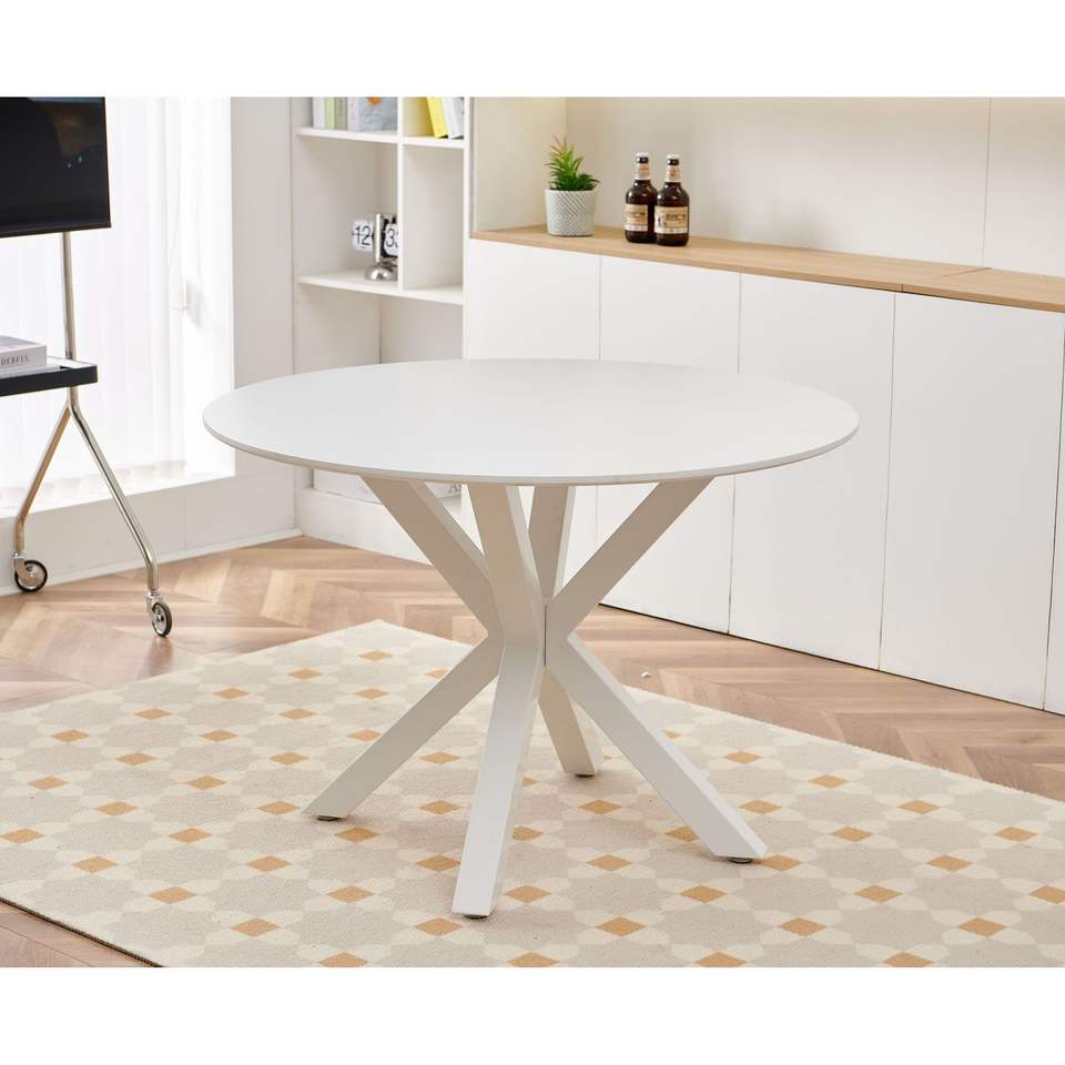 Tavolo da Pranzo Bianco Stile Mid-Century da 107 cm con Piano in MDF e Base a Piedistallo per 4-6 Persone, Ideale per Caffè o Come Tavolino d'Appoggio