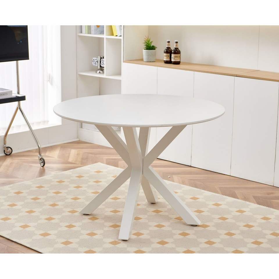 Tavolo da pranzo 42.1 \ "bianco della metà del secolo con piano in MDF e piedistallo con Base a gambe incrociate per 4-6 persone caffè e tavolino