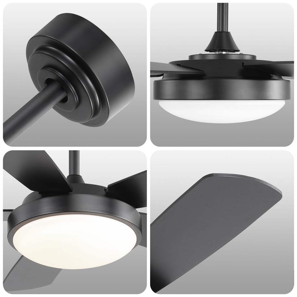 Ventilatore da soffitto a LED nero da 42 pollici con luce a LED 22W e telecomando MDF pale reversibili motore a corrente continua