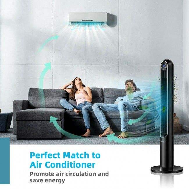 Ventilatore a Torre Smart da 42 Pollici con Pannello Display Intelligente a 80 Gradi e Telecomando
