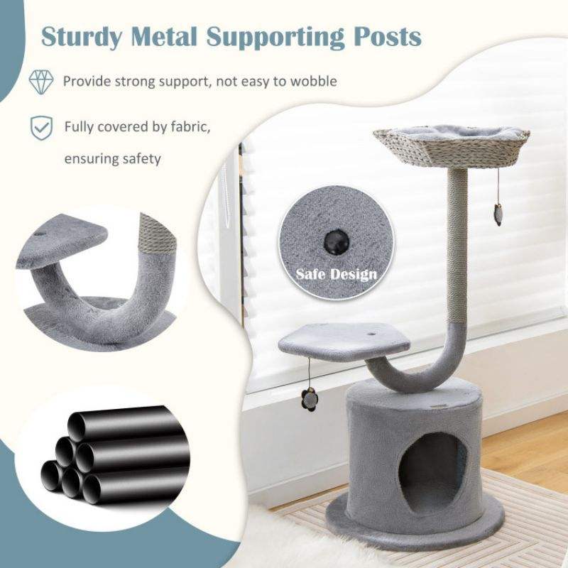 Torre per gatti alta 42 pollici con struttura in metallo curvo per gatti grandi e piccoli alberi e graffi