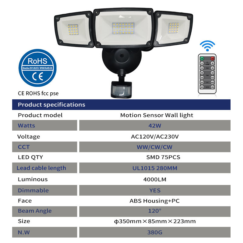 42 watt riflettore remoto Pir sensore di movimento proiettori IP66 Smart passerella giardino luce di sicurezza Led esterno