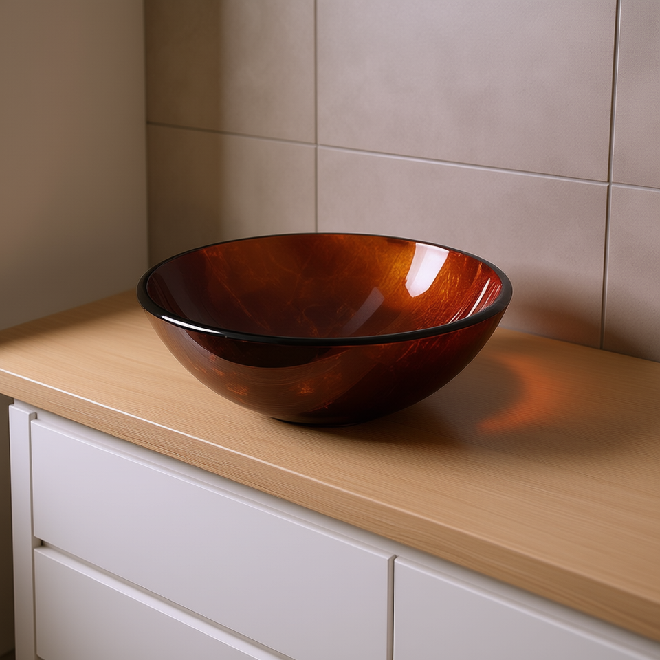 Round Glass Vessel Sink 420mm Diameter Glossy Finish For Bathroom Use