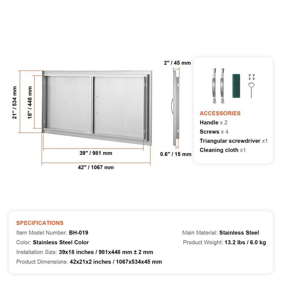 Porta di Accesso BBQ a Incasso in Acciaio Inox 42W X 21H Pollici per Cucina Esterna, Accessori per Mobili da Cucina Verticali