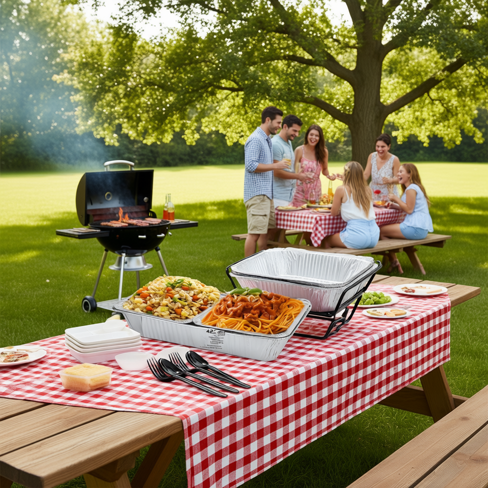 Disposable Party Supplies Kit Aluminum Foil Pans Heat Resistant Utensils Set for Office BBQ Parties