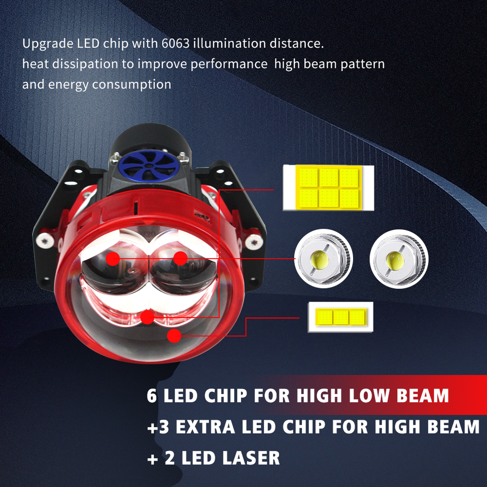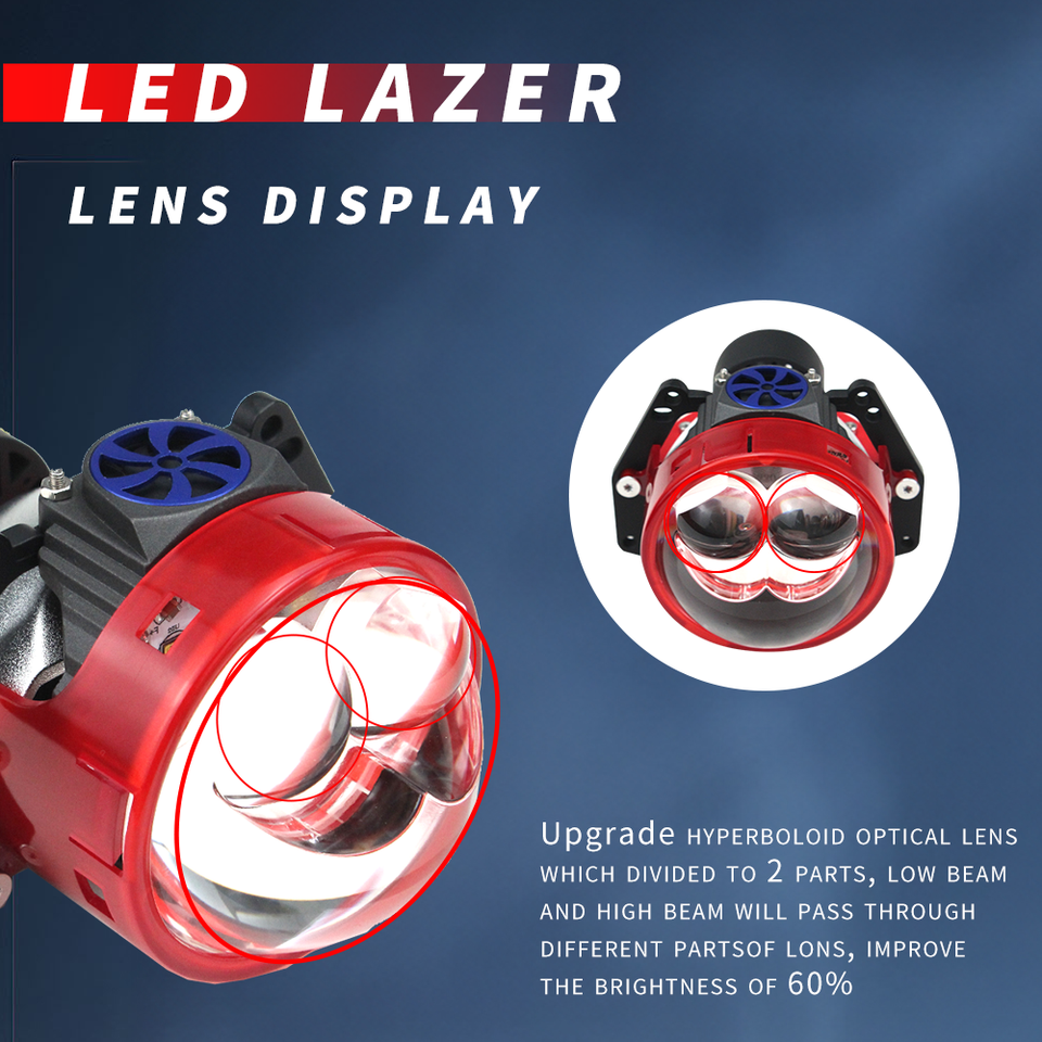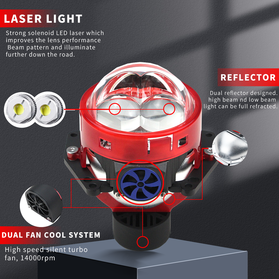 Faro Bi-Proiettore Laser LED da 42W 75W con Lente da 3.0 Pollici, 6000K 13.5V G03, Abbaglianti e Anabbaglianti, Accessori Auto