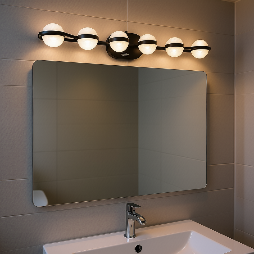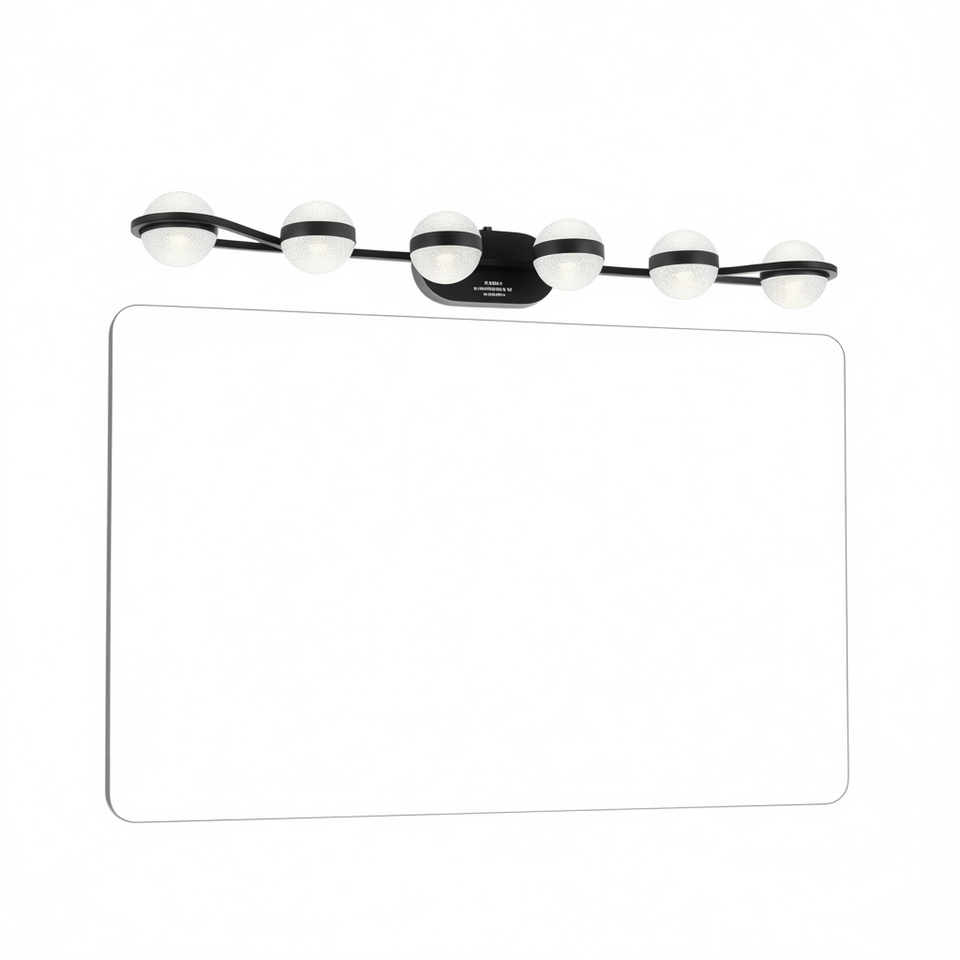 Moderna Lampada da Bagno a LED Minimalista Nera a 6 Luci, Montaggio a Parete, Luce Calda 3500K, Finitura Opaca, IP44, Dimmerabile