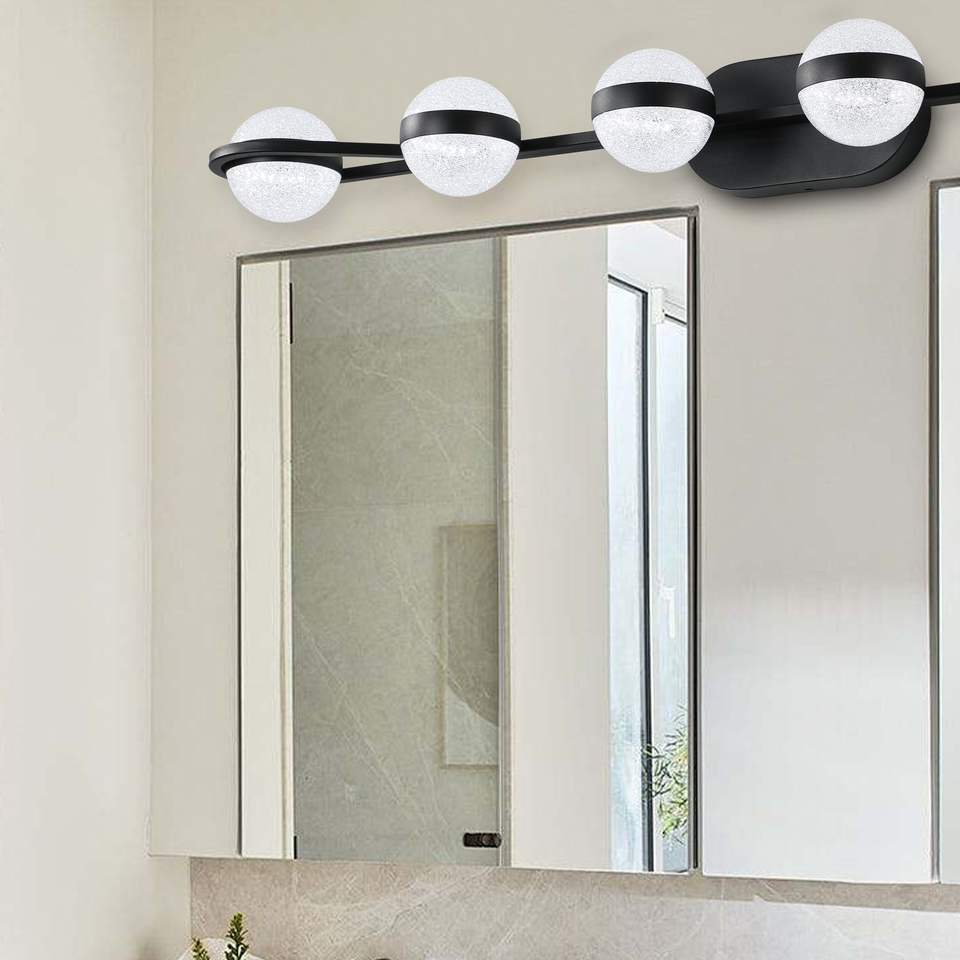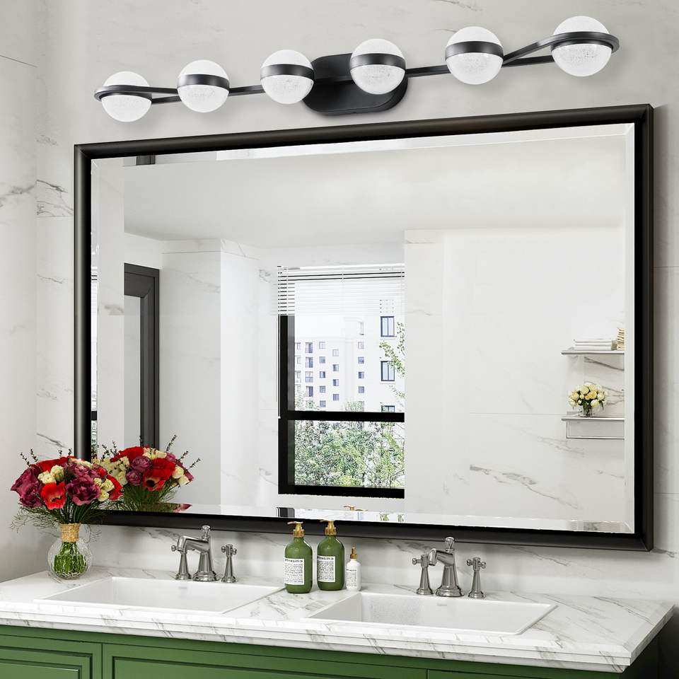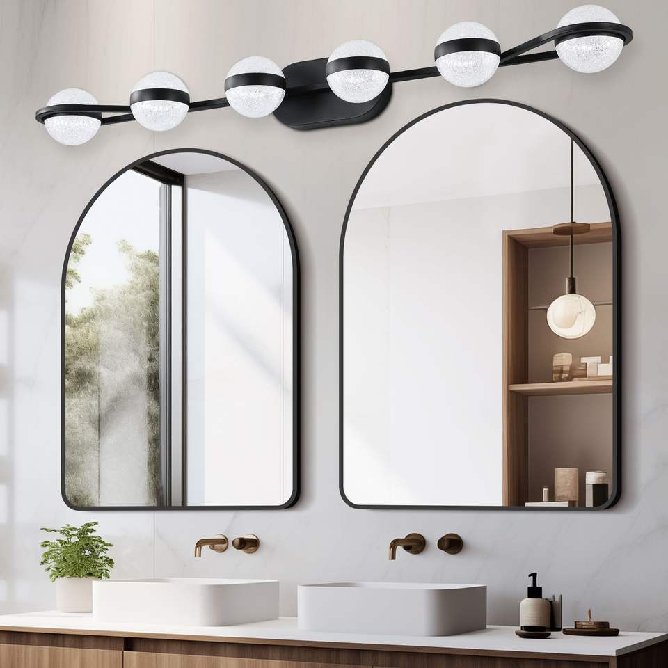 Lampada da Bagno a LED Minimalista Nera da 43 Pollici, 6 Luci, Montaggio a Parete, Decorativa con Paralumi in Acrilico Effetto Sabbia Cristallina