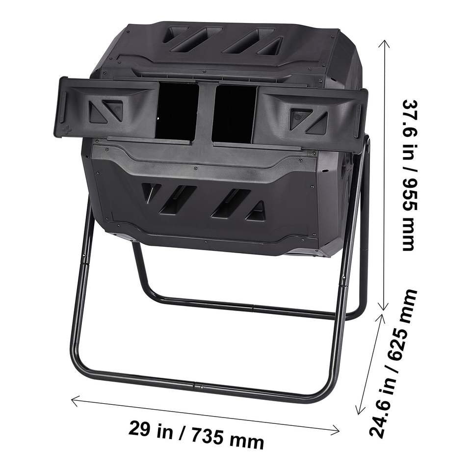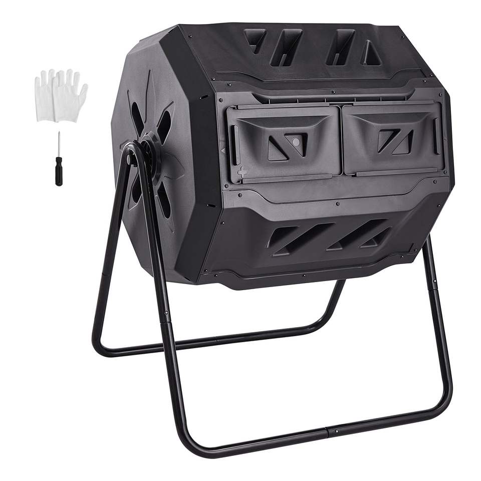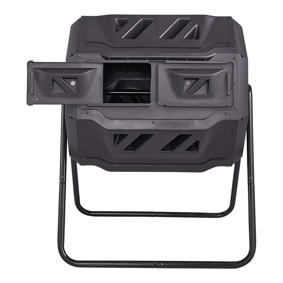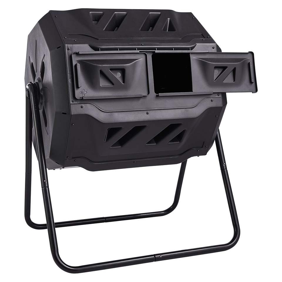 Composter Rotante a Doppia Camera da 43 Galloni, Grande Composter Rotante con Telaio in Acciaio, 2 Porte Scorrevoli, Aeratori per Compost BP