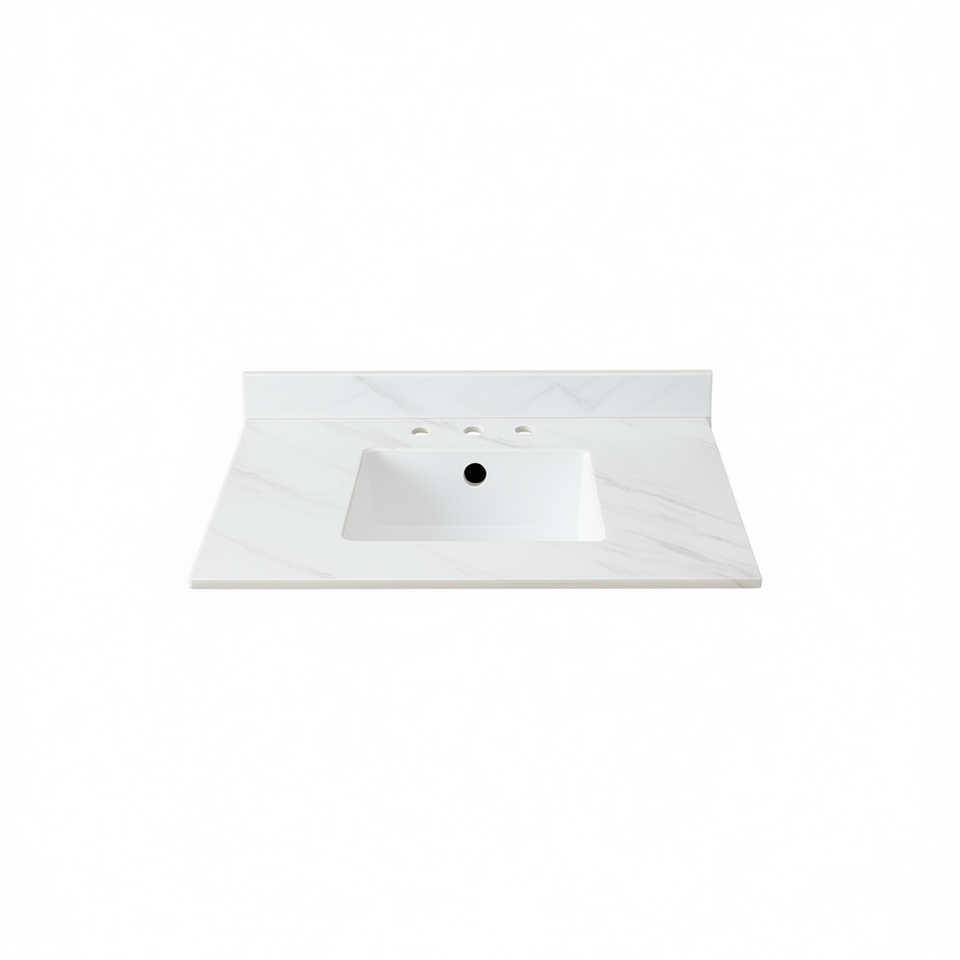 White Marble Bathroom Vanity Top 43 Inch Undermount Rectangular Pre Drilled Faucet Holes Ceramic Basin Modern Design