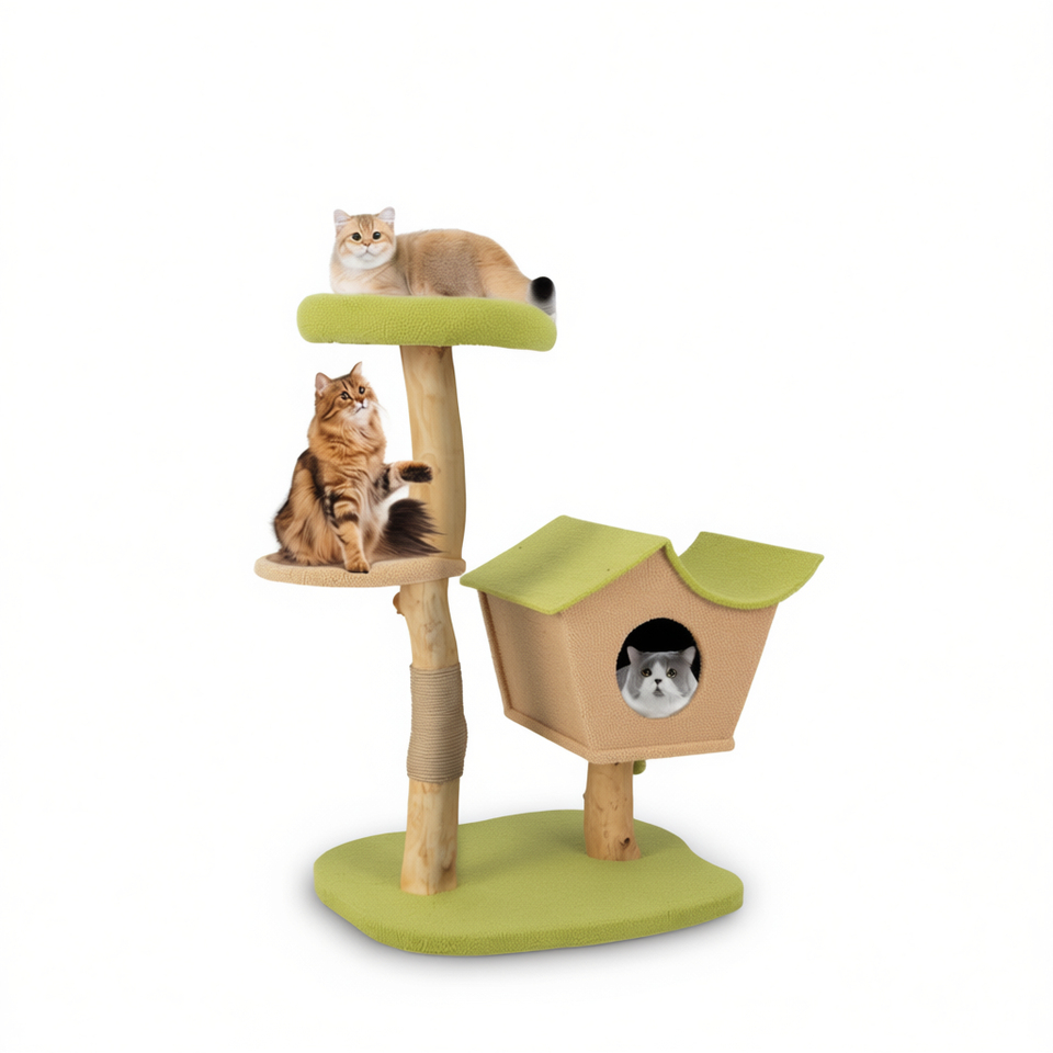 Albero per gatti in legno da 43 pollici con cuccia imbottita e tiragraffi per gatti da interno