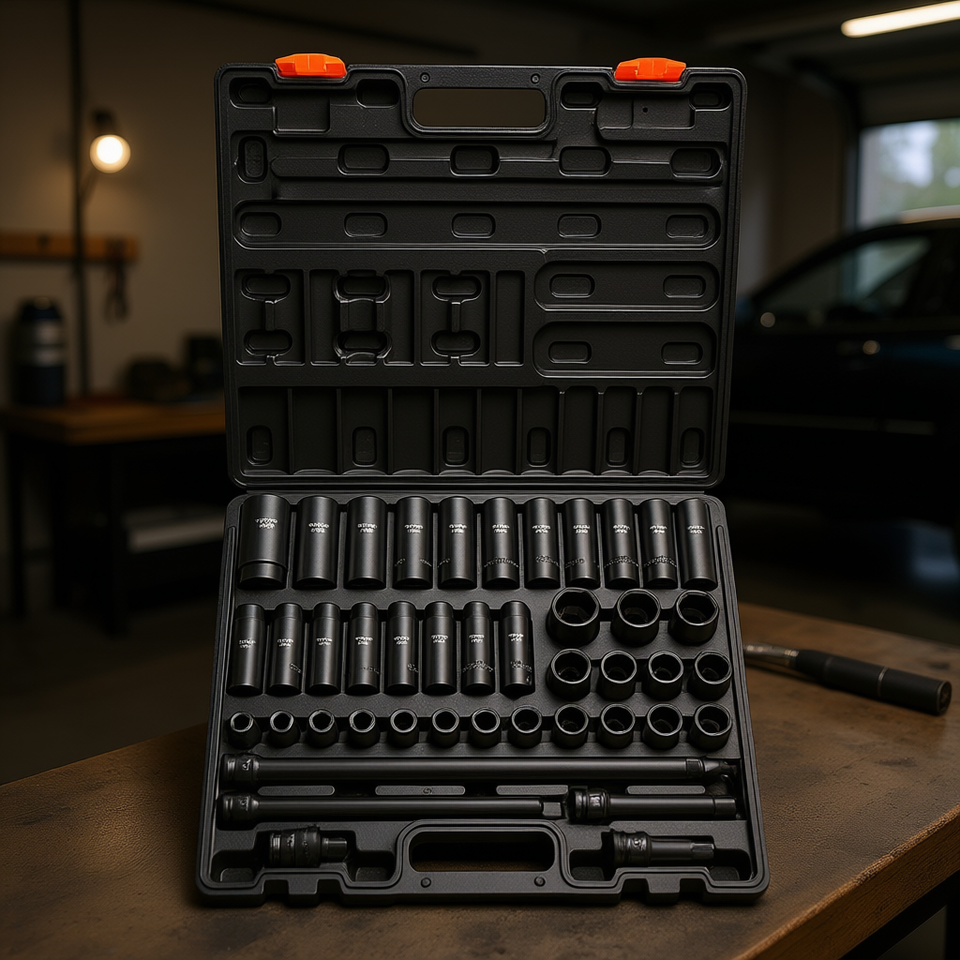 Set di chiavi a bussola a impatto da 43 pezzi, attacco da 1/2 pollice, metrico 9-30 mm, profondità standard, assortimento di grado industriale, finitura ossido nero