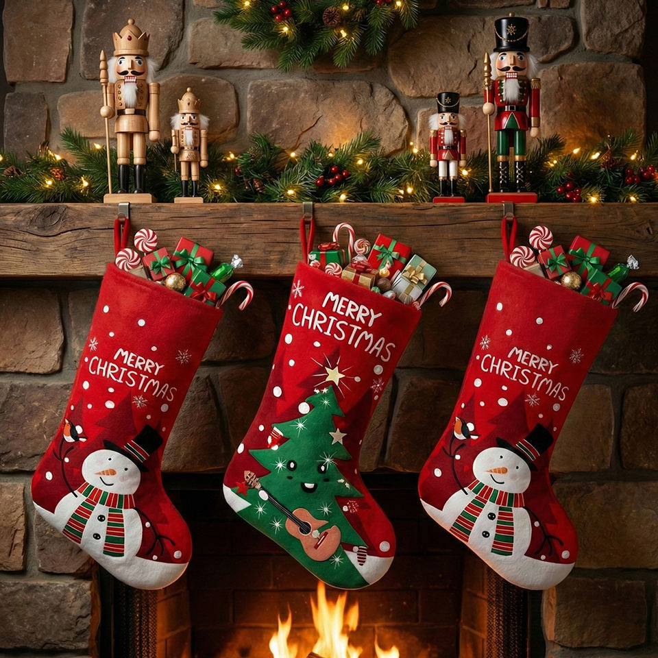 Calza di Natale Rossa da 43 cm con Design Stampato, in Pelliccia e Materiale a Quadri per Occasioni Festive Invernali di Buon Natale