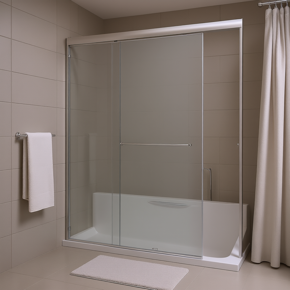 Porta Doccia Scorrevole Doppia Semi-Incassata 44-48 Pollici L X 72 Pollici H 1/4 Pollici Box doccia walk-in in vetro temperato e nichel spazzolato