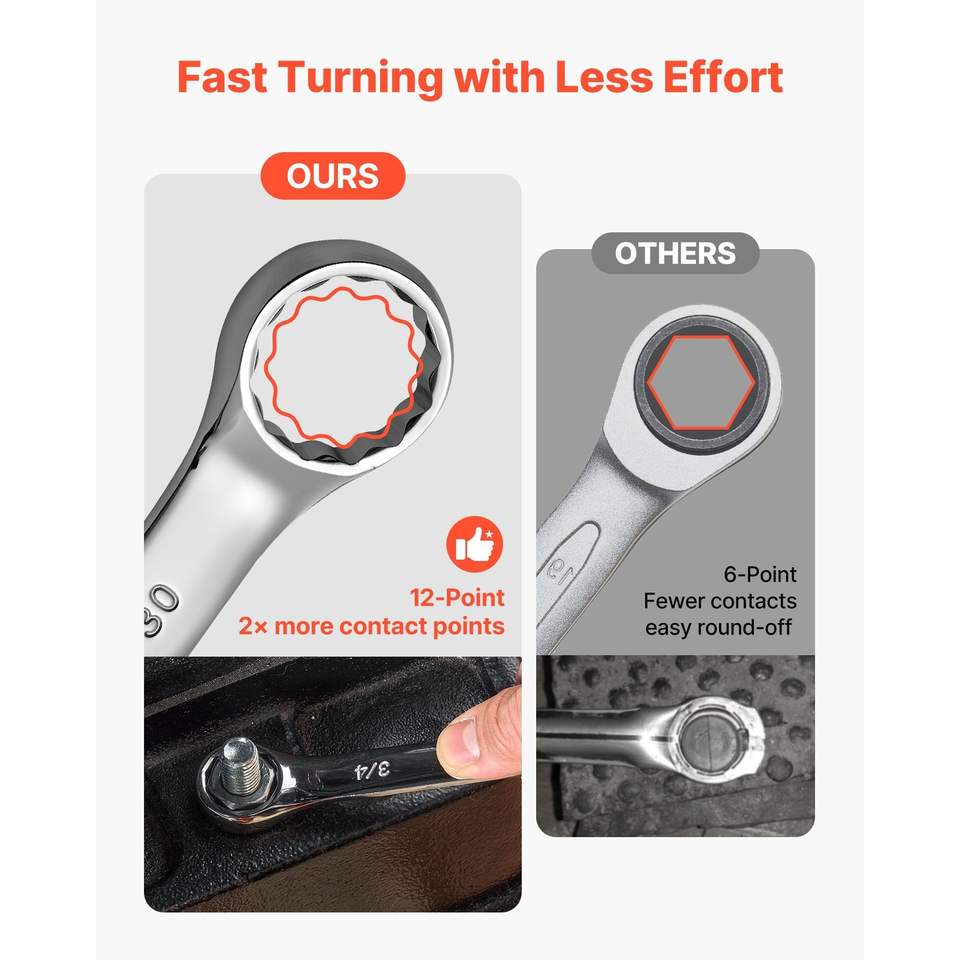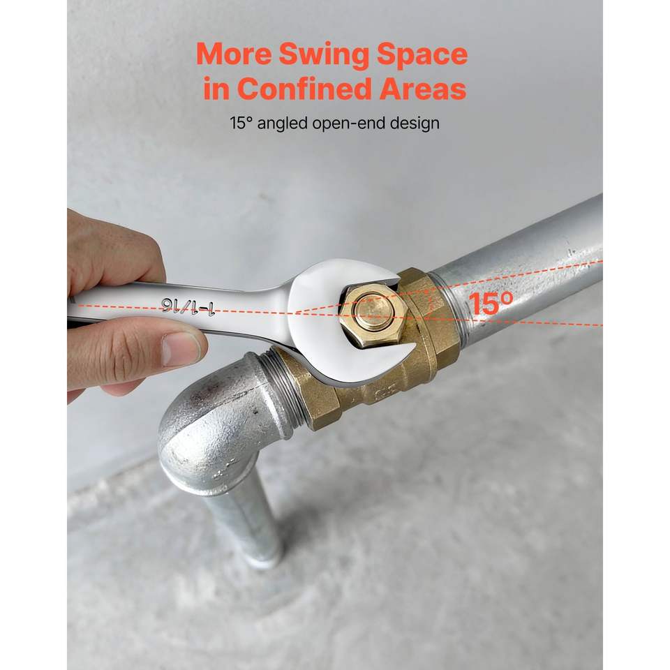 Set di chiavi combinate metriche SAE da 44 pezzi, a 12 punte, con estremità a bussola angolata a 15 gradi e apertura a rotella
