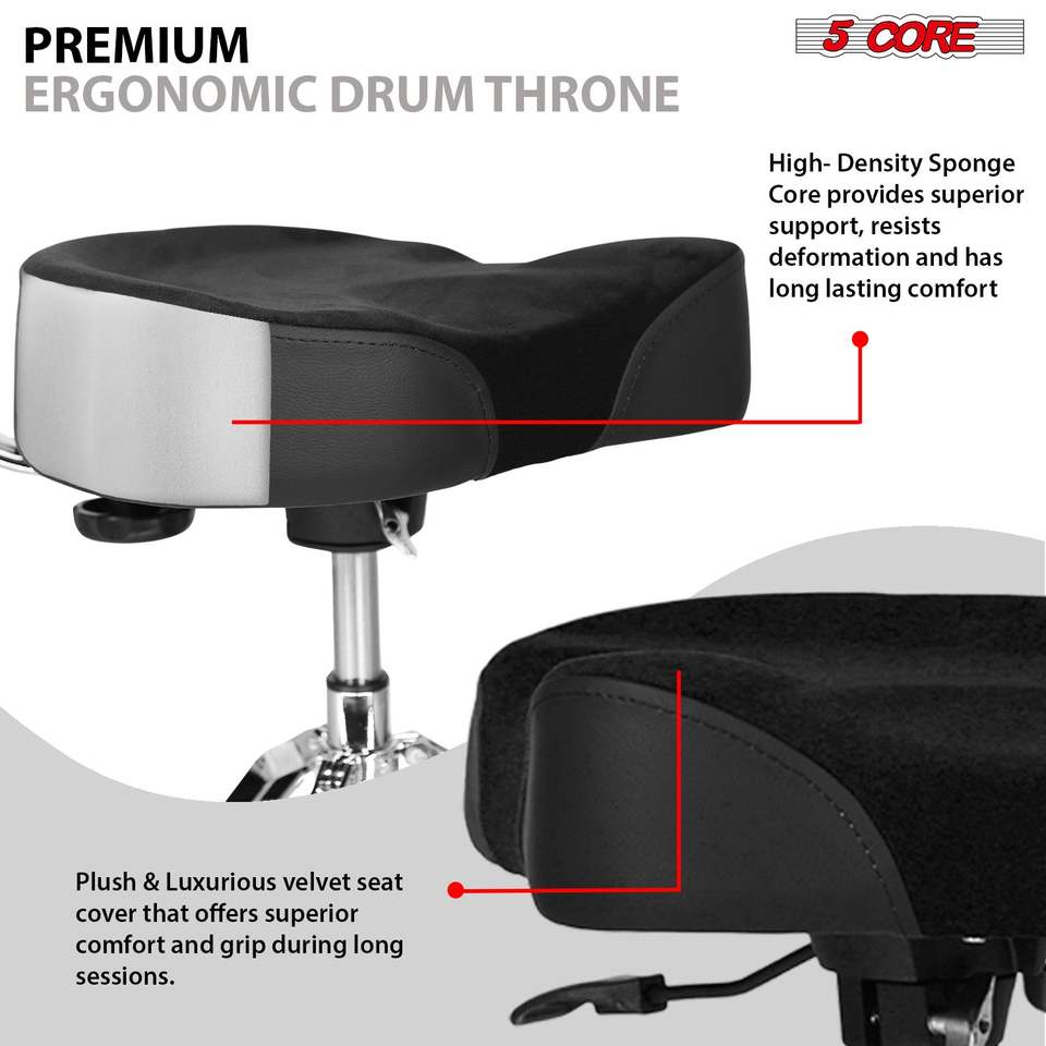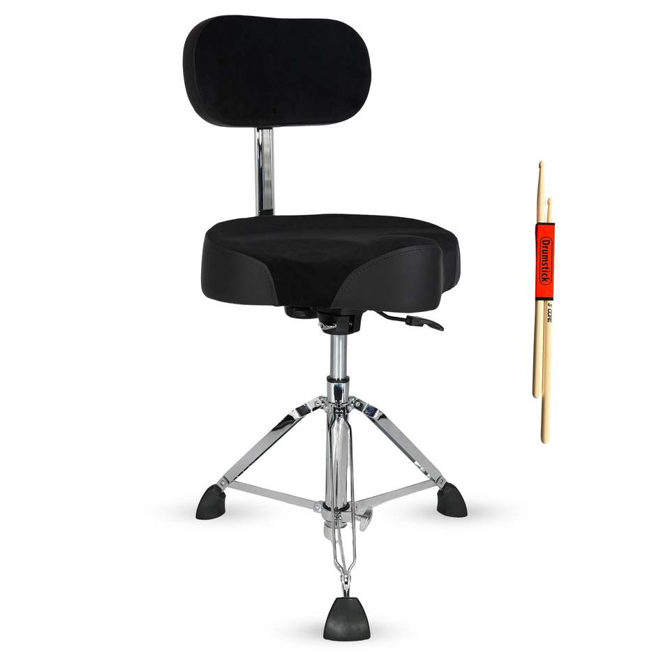 Sgabello per Batteria Regolabile con Capacità di 200 kg, Sedia da Batterista da 63,5 cm con Schienale e Imbottitura da 10 cm, Accessorio per Strumenti Musicali